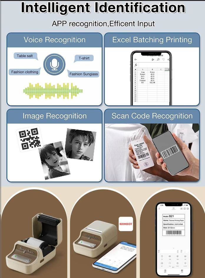 Zabudnite na zdĺhavé a komplikované procesy tlače štítkov. S NIIMBOT B21S je tlač štítkov hračka vďaka jej bezdrôtovej technológii a vynikajúcim funkciám. Táto prenášačná tlačiareň štítkov je vybavená dobíjateľnou lítiovou batériou, ktorá vám umožní tlačiť kdekoľvek a kedykoľvek budete potrebovať po dobu 4 až 5 hodín. S NIIMBOT B21S môžete jednoducho označovať veci v kancelárii, škole, obchode a na mnoho ďalších miestach. Jej kompatibilita s PC a systémami Android a iOS znamená, že môžete tlačiť priamo zo svojho smartfónu alebo tabletu, čo zaisťuje maximálne pohodlie a efektívnosť.