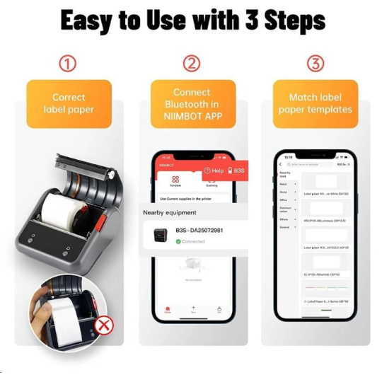 NIIMBOT B3S je tlačiareň štítkov, ktorá kombinuje výkon, pohodlie a kvalitu. S jej jednoduchou obsluhou a vynikajúcimi funkciami vás prekvapí, aké rýchle a jednoduché je vytváranie profesionálnych štítkov.