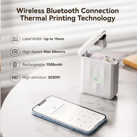 Ponúka širokú škálu možností tlače. Môžete tlačiť vertikálne aj horizontálne, vytvárať čiarové kódy a sériové čísla, čo vám umožňuje prispôsobiť štítky presne podľa svojich potrieb. S rozlíšením 203 dpi, maximálnou šírkou tlače 12 mm a kompatibilitou s 12-15mm štítkami, si vyrobíte polepky a štítky v tej najvyššej kvalite. To všetko v minimálnych rozmeroch. Tlačiareň si môžete vziať kamkoľvek a ani o nej nebudete vedieť. Tlačí