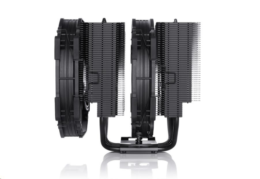 NH-D15 chromax.black je čierna verzia oceneného modelu NH-D15, špičkového tichého chladiča procesora spoločnosti Noctua. Vďaka rovnakej osvedčenej konštrukcii chladiča dual-tower a ventilátorom NF-A15 PWM zostáva verný úspešnému NH-D15, ktorý sa vyrovná výkonu vodných chladičov typu all-in-one pri zachovaní vynikajúceho tichého chodu. Verzia chromax.black s čiernymi ventilátormi a chladičom s čiernym povrchom zároveň kombinuje tieto prednosti s elegantným stealth vzhľadom. NH-D15 chromax.black, doplnený o slávny systém montáže SecuFirm2 do viacerých socketov, tepelnú pastu Noctua NT-H1 pre nadšencov a plnú 6-ročnú záruku výrobcu, je luxusnou voľbou pre overclockeerov aj tichých nadšencov, ktorí hľadajú chladič špičkovej triedy, ktorý vyzerá rovnako skvele ako chladí.