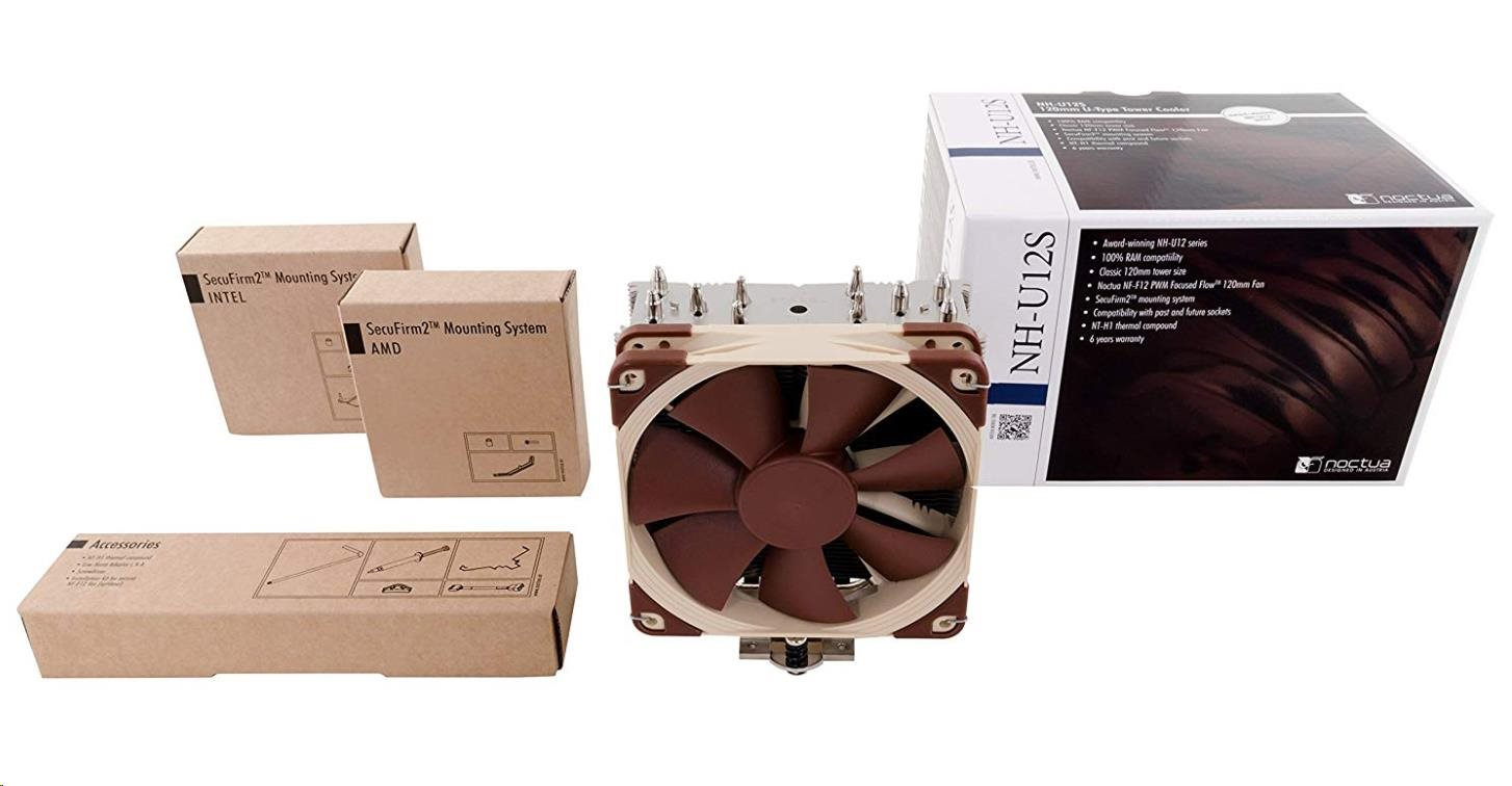 NH-U12S je najnovší 12cm model z klasickej série U noho dielom spoločnosti Noctua, ktorá získala viac ako 400 ocenení a odporúčaní od medzinárodnej tlače. Tenší tvar S-verzie s hrúbkou 45 mm garantuje 100% kompatibilitu s vysokými RAM modulmi a zároveň jeho jemne vyladený dizajn a špičkový ventilátor NF-F12 FocusedFlow™ s podporou PWM na úplne automatickú reguláciu rýchlosti mu umožňujú ešte viac zlepšiť renomovanú tichú chladivú schopnosť svojho predchodcu. Dokončuje ho spoľahlivý, profesionálny upevňovací systém SecuFirm2™, overená tepelná pasta NT-H1 a plná 6-ročná záruka výrobcu. NH-U12S je tak dokonalým riešením prémiovej kvality, ktoré kombinuje vynikajúci výkon, tichý chod a vynikajúcu kompatibilitu.