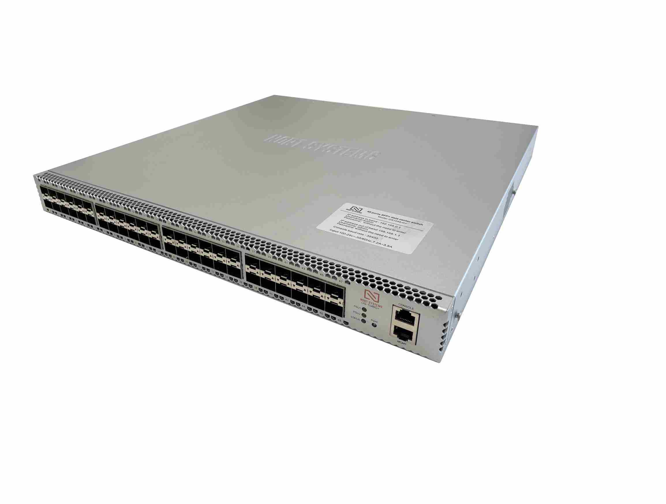 Overview The NORT SYSTEMS OS - 1048+ Series is key components of the NORT SYSTEMS portfolio of data center switches. The NORT SYSTEMS OS - 1048+ Series are purpose built 10GbE data center switches in compact and energy efficient form factors with wire speed layer 2 and layer 3 features combined with low latency and advanced features for software defined cloud networking. Featuring a choice of 1U models the OS – 1048+ Series deliver high density 1/10G SFP+ based ports for flexible configurations supporting migration from 1/10G to 10/40G networks. High Availability The NORT SYSTEMS OS - 1048+ Series were designed for high availability from both a software and hardware perspective. Key high availability features include: 1+1 hot-swappable power supplies and four N+1 hot-swap fans Color coded PSU’s and fans Live software patching Self healing software with Stateful Fault Repair (SFR) Smart System Upgrade (SSU) and Accelerated Software Update (ASU) Multi-chassis LAG for active/active L2 multi-pathing Smart System Upgrade Smart System Upgrade is a network application designed to address one of the most complicated and challenging tasks facing data center administrators – network infrastructure maintenance. Changes to the underlying network infrastructure can affect large numbers of devices and cause significant outages. SSU provides a fully customizable suite of features that tightly couples data center infrastructure to technology partners allowing for intelligent insertion and removal, programmable updates to software releases and open integration with application and infrastructure elements. Unified Forwarding Table Cloud network scalability is directly impacted by the size of a switches forwarding tables. In many systems a 'one size fits all' approach is adopted using discrete fixed size tables for each of the common types of forwarding entry. The NORT SYSTEMS OS - 1048+ leverages a common Unified Forwarding Table for the L2 MAC, L3 Routing, L3 Host and IP Multicast forwarding entries, which can be partitioned per entry type. The ideal size of each partition varies depending on the network deployment scenario. The flexibility of the UFT coupled with the range of pre-defined configuration profiles available on the OS - 1048+ ensures optimal resource allocation for all network topologies and network virtualization technologies. Layer 2 Features 802.1w Rapid Spanning Tree 802.1s Multiple Spanning Tree Protocol 4096 VLANs 802.3ad Link Aggregation/LACP 64 ports/channel 104 groups per system Multi-Chassis Link Aggregation (MLAG) 64 ports per MLAG Custom LAG Hashing 802.3x Flow Control Jumbo Frames (9216 Bytes) IGMP v1/v2/v3 snooping Storm Control Layer 3 Features Routing Protocols: OSPF and RIPv2 VRF BFD Route Maps IGMP v2/v3 PIM-SM VRRP Virtual ARP (VARP) Policy Based Routing uRPF Selective Route Download Security Features IPv4 / IPv6 Ingress & Egress ACLs using L2, L3, L4 fields MAC ACLs ACL Drop Logging and ACL Counters Control Plane Protection (CPP) PDP Service ACLs DHCP Relay / Snooping MAC Security RADIUS Quality of Service (QoS) Features Up to 8 queues per port 802.1p based classification DSCP based classification and remarking Explicit Congestion Notification (ECN) QoS interface trust (COS / DSCP) Strict priority queueing Weighted Round Robin (WRR) Scheduling Per-Priority Flow Control (PFC) Policing/Shaping Rate limiting Standards Compliance 802.1D Bridging and Spanning Tree 802.1p QOS/COS 802.1Q VLAN Tagging 802.1w Rapid Spanning Tree 802.1s Multiple Spanning Tree Protocol 802.1AB Link Layer Discovery Protocol 802.3ad Link Aggregation with LACP 802.3ab 1000BASE-T 802.3z Gigabit Ethernet 802.3ae 10 Gigabit Ethernet Forwarding Resources Base Mode UFT Modes MAC Addresses 32K 288K IPv4 Hosts 16K 208K IPv4 Routes – Unicast 16K 144K IPv4 Routes – Multicast 16K 104K * IPv6 Hosts 16K 104K IPv6 Routes – Unicast 8K 77K * IPv6 Routes – Multicast 4K 52K * Environmental Characteristics Operating Temperature 0 to 40°C (32 to 104°F) Storage Temperature -25 to 70°C (-13 to 158°F) Relative Humidity 5 to 95% Operating Altitude 0 to 10,000 ft, (0-3,000m) Standards Compliance EMC Emissions: FCC, EN55022, EN61000-3-2, EN61000-3-3 or EN61000-3-11, EN61000-3-12 (as applicable) Immunity: EN55024 Emissions and Immunity: EN300 386 Safety UL/CSA 60950-1, EN 60950-1, IEC 60950-1 CB Scheme with all country differences European Union Directives 2006/95/EC Low Voltage Directive 2004/108/EC EMC Directive 2011/65/EU RoHS Directive 2012/19/EU WEEE Directive Interface Type SFP+ ports 10GBASE-SR 300m (OM3) /400m (OM4) 10GBASE-LR 10km 10GBASE-ER 40km 10GBASE-ZR 80km 100/1000BASE-T, 1GbE SX/LX Yes Specifications OS-1048G+ Ports 48 x SFP+ Total 10GbE Ports 48 Throughput 720Gbps Packets/Second 960 Mpps Latency 550 ns System Memory 4 Gigabytes SSD Storage (optional) 120 Gigabytes Packet Buffer Memory 12MB (Dynamic Buffer Allocation) 10/100/1000 Mgmt 1 RS-232 Serial Ports 1 (RJ-45) Hot-swap Power Supply 2 (1+1 redundant) Hot-swap Fans 2 (1+1 redundant) Typical/Max Power 140W / 220W Size (WxHxD) 19 x 1.75 x 17.3” (48.3x 4.4x 44cm) Weight 19lbs (8.6kg) Power Supply Specifications Power Supply Model CSU550-AP Input Voltage 100-240VAC Typical Input Current 6.3 - 2.3A Input Frequency 50/60Hz Input Connector IEC 320-C13.