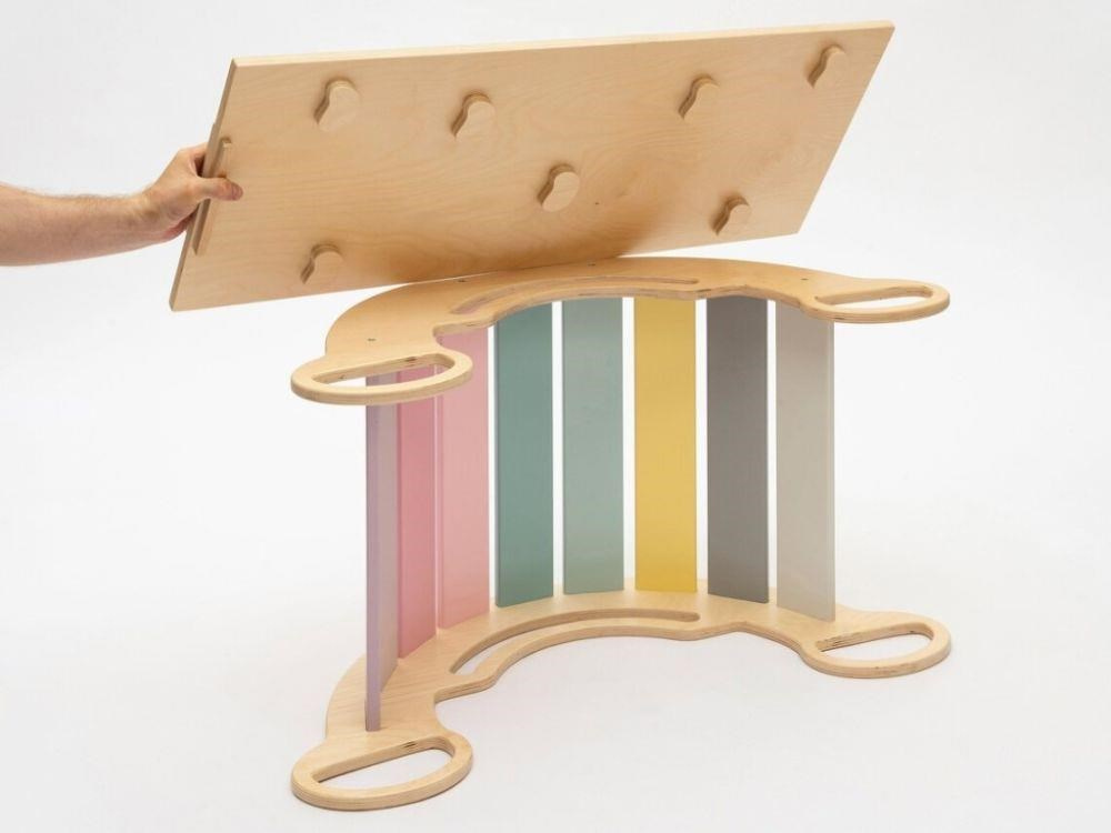 Kvalitný drevený obojstranný kúsok (len k hojdačke SMILE) má všestranné využitie. Z jednej strany zábavná šmykľavka, po ktorej sa deti zosunú možno na mäkký podložku, na druhej strane lezecká doska s úchytmi, ktorá rozvíja pohybové zručnosti vašej dievčatka aj chlapca. Obojstranná doska je doplnkom k Montessori hojdačke SMILE. Položená na bočnej hrane hojdačky smile vytvorí deťom praktický stolček na desiatu aj na maľovanie. Obojstranné prkno nie je možné používať s Montessori hojdačkami 5in1 ELIS DESIGN. Prkno je širšie ako naše dúhové a drevené hojdačky. PRKNO JE DOPLNKOM IBA KU MONTESSORI HOJDAČKÁM SMILE, ktorú premení na detský stolček.