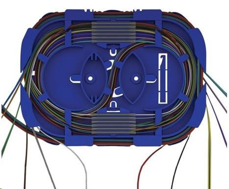 - dva hrebene s celkovou kapacitou 24 chráničov zvarov. (Uloženie a konštrukcia výklopných hrebeňov umožňuje viesť vlákna aj pod nimi