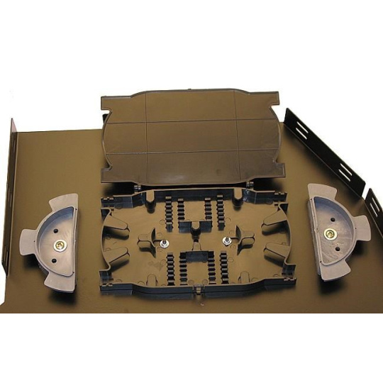 19" rack, 1U, pre 24 SC alebo duplexné LC simplexné adaptéry, čierna farba, kovové puzdro, 24 spojovacích zásobníkov