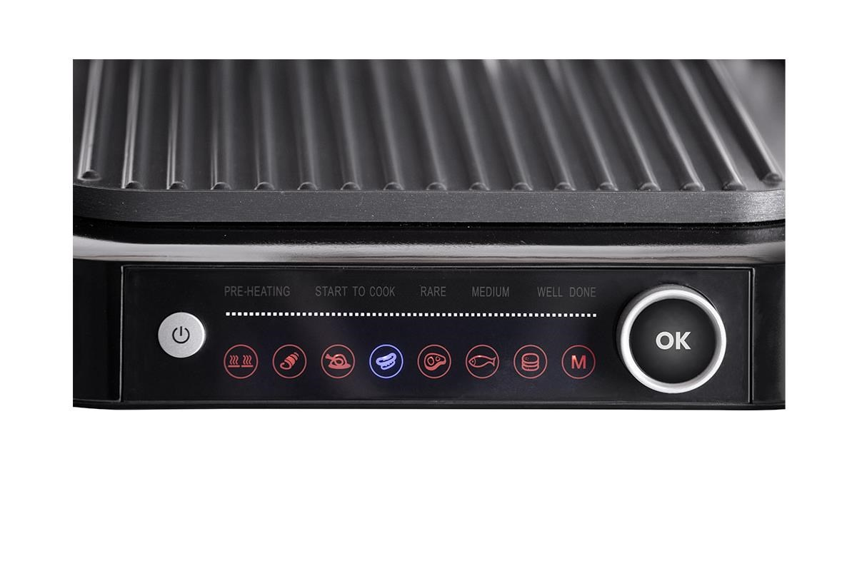 Pre ešte pohodlnejšiu prípravu grilovaných jedál má Grillchef-2 ovládaciu obrazovku s LED displejom, na ktorej si jednoducho navolíte požadovaný režim grilovania. Na výber máte zo 6 programov vrátane funkcie Defrost a manuálneho režimu (M).