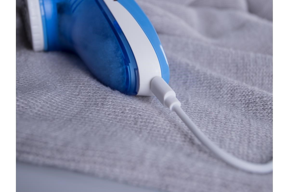 Výkonný odstraňovač žmolků, Účinne odstraňuje žmolky zo všetkých druhov tkanín, Svetelná kontrolka sieťového pripojenia, Odnímateľná priehľadná nádobka na žmolky, Vestavený dobíjací akumulátor, Dlhá výdrž akumulátora, Nabíjanie zo siete: 230V ~ 50Hz, 5 V / 0,5 - 1 A / 3 W, Napájanie: 2,4 V (NiMH / 400 mAh)