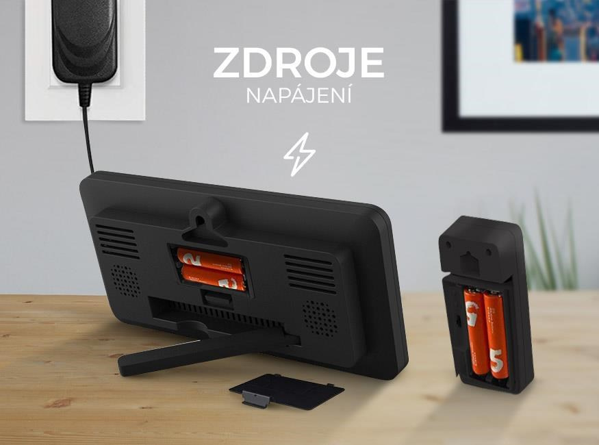Meteostanicu je možné napájať z vhodného AC adaptéra 5 V (nie je súčasťou balenia). V prípade výpadku elektrickej energie udrží meteostanicu v chode aj 2 batérie (AAA). Bezdrôtový senzor je tiež napájaný dvomi 1,5V batériami (AAA).