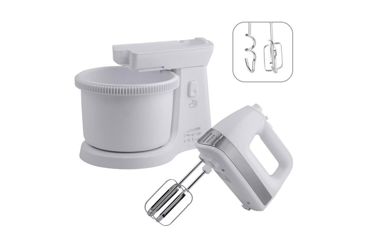 Orava SL-400 C ruční šlehač s nádobou, 400 W, 85 dB, 5 rychlostí, 2.5 l objem mísy, pulzní spínač, bílá