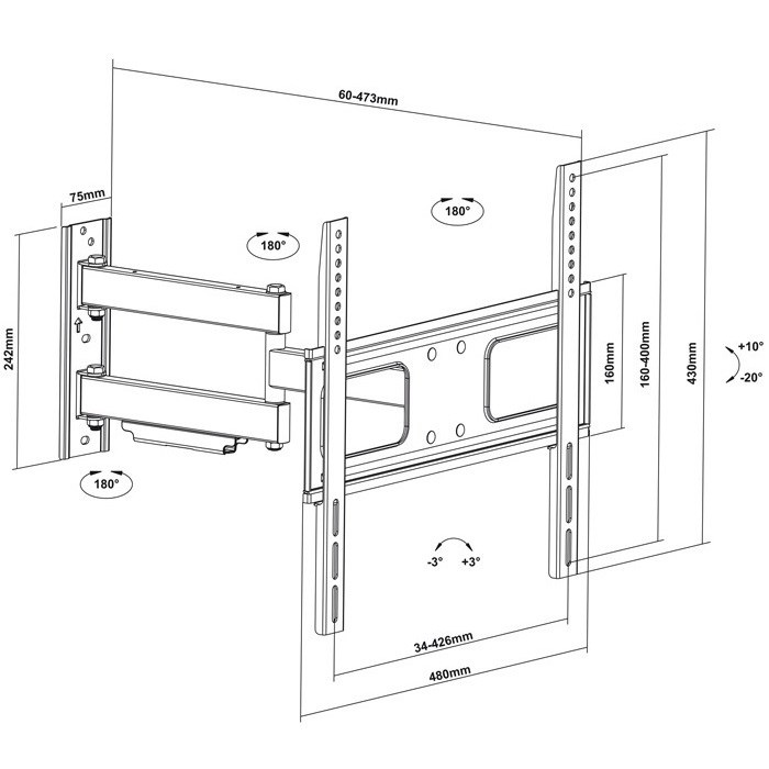 Otočný, sklopný a dĺžkovo nastaviteľný držiak TV Fiber Mounts M64C7 Závesný systém na rovné aj zahnuté obrazovky do 70", otočný, sklopný, dĺžkovo nastaviteľný, VESA 200x200 až 400x400, nosnosť 50kg Potrebujete kvalitný otočný, sklopný a dĺžkovo nastaviteľný držiak na klasickú rovnú alebo zahnutú televíziu? Nechcete zaplatiť viac ako je nevyhnutné? Máme pre Vás ideálne riešenie - držiak na TV Fiber Mounts M64C7. Otočné, sklopné a dĺžkovo nastaviteľné rameno umožní nastavenie obrazovky presne do polohy, ktorú požadujete. Pozerať na televíziu je potom oveľa príjemnejšie a pohodlnejšie. Na držiaku je aj krytka pre upevnenie káblov. Ak nie ste zrovna profesionálny montér, určite oceníte možnosť korekcie roviny obrazovky aj po ukotvení držiaku do steny. Dodávame v čiernom prevedení spolu s montážnym materiálom. Kvalitný vysúvací otočný a naklápací držiak na rovné aj zahnuté televízie do 65" Fiber Mounts M64C7 Držiak na rovné aj zahnuté televízie Fiber Mounts M64C7 Technické údaje: nosnosť 50kg podporuje VESA štandardy 200x200 až 400x400 na zahnuté aj klasické rovné obrazovky odporúčame na TV s uhlopriečkou 43" až 70" nastavenie vzdialenosti 60 až 473mm nastavenie náklonu obrazovky +10° až -20° otočný do strán až +90° / -90° korekcia roviny obrazovky +3° až -3° masívna kovová konštrukcia krytka pre upevnenie káblov vysoká kvalita spracovania farba čierna záruka 3 roky Fiber Mounts M64C7 je kvalitný vysúvací držiak na rovné a zahnuté LCD LED OLED QLED televízory, jednoduché otáčanie TV do strán a naklonenie dole alebo hore, nosnosť 50kg Držiak podporuje VESA štandardy pre upevnenie: VESA 200x200 VESA 300x200 a 200x300 VESA 300x300 VESA 400x200 a 200x400 VESA 400x300 a 300x400 VESA 400x400 Nástenný držiak Fiber Mounts M64C7 je vhodný pre zavedenie všetkých typov a veľkostí televízorov, ktoré majú hmotnosť do 50kg a ktoré podporujú niektorý z uvedených VESA štandardov. Na veľkosti televízie nezáleží, udávané uhlopriečky sú iba informatívne.