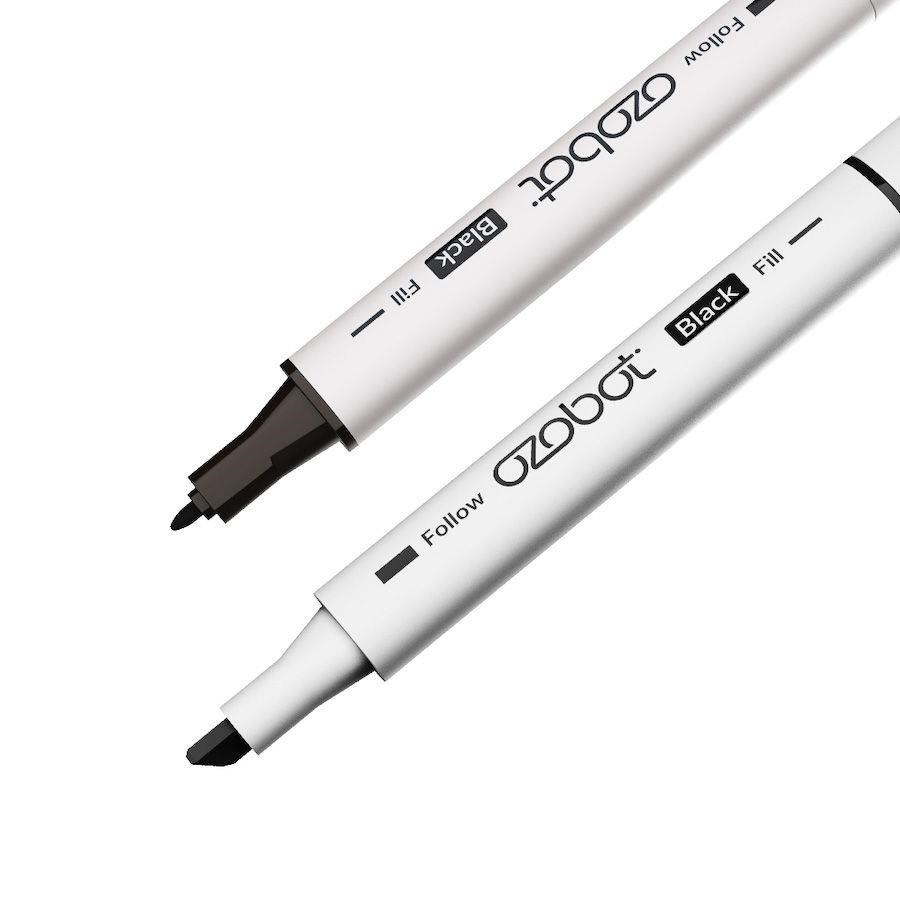 Ozobot reaguje správne na príkazy, keď sú jeho svetelné senzory kalibrované pre aktuálne využívaný podklad. S pomocou fixiek si môžete zakaždým vytvoriť kalibračný bod v blízkosti hernej plochy. Oboustranné fixky vám ušetria miesto v penále aj čas, ktorý by ste inak pri hodinách s Ozobotom strácali hľadaním silnejších/slabších popisovačov – ten, čo budete mať v ruke, stačí len otočiť! Stopu fixiek z pokožky ľahko umyjete mydlom a teplou vodou. Tým znečistené oblečenie ihneď vyperte v teplej vode s jemným pracím prostriedkom (bez predpierky alebo bielenia). Udržujte ich mimo kontakt s poréznymi materiálmi, ako je drevo, PVC, pod.Tipy na kreslenie kódov