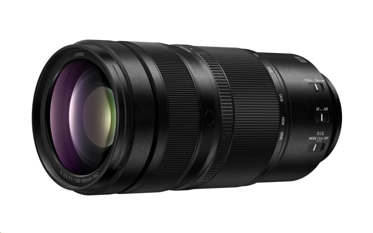 Ultrakompaktný teleobjektív Lumix S pre foto a video vo rozlíšení 8K, ohnisková vzdialenosť 100–500 mm s možnosťou predĺženia až na 1000 mm (s 1.4×/2.0× telekonvertorom), optická stabilizácia obrazu O.I.S.