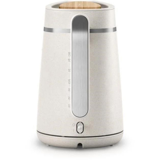 Vyrazte smerom k zelenšej budúcnosti s prvou rýchlovarnou kanvicou na svete vyrobenou z použitých kuchynských olejov! Prevratná metóda spracovania kuchynských zvyškov dala vzniknúť špeciálnemu bioplastu, ktorý je mimoriadne odolný a nezávadný. Kanvica má minimalistický nadčasový dizajn, ktorý kombinuje recyklované a prírodné materiály. Skvelo sa hodí do každého interiéru. Kanvica má objem 1,7 l a vďaka ľahko čitateľnému indikátoru hladiny okamžite pripraví požadované množstvo vody. Základňa kanvice je otočná o 360° a umožňuje jednoduchú manipuláciu. Dolať vodu je možné pod prúdom tečúcej vody. Prístroj disponuje radom energeticky úsporných funkcií pre váš väčší pokoj a šetrnosť k prírode.
