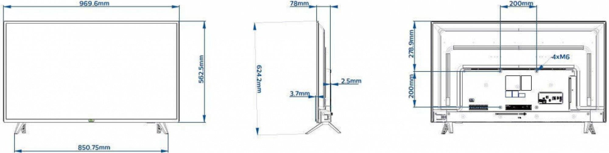 Uhlopriečka obrazovky:42"; Technológia TV:LED; Rozhranie:HDMI; Formát obrazovky:16:9.