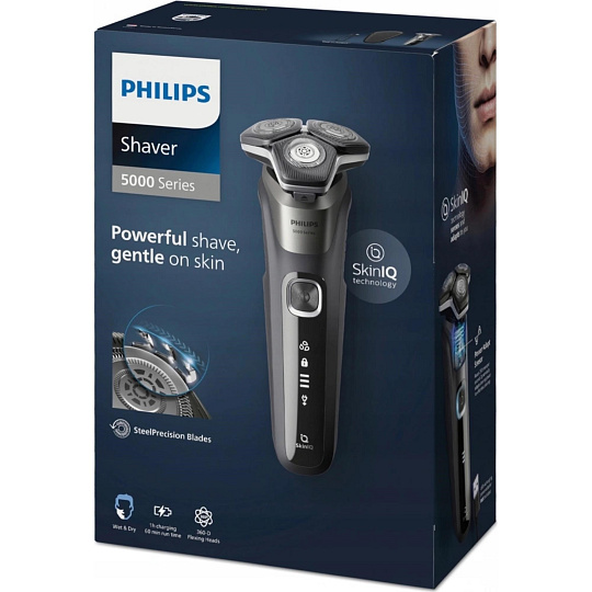 Philips Series 5000 Wet & Dry S5887/30 pánský elektrický holicí strojek, šedý, SkinIQ, 360° otočné hlavy,Power Adapt