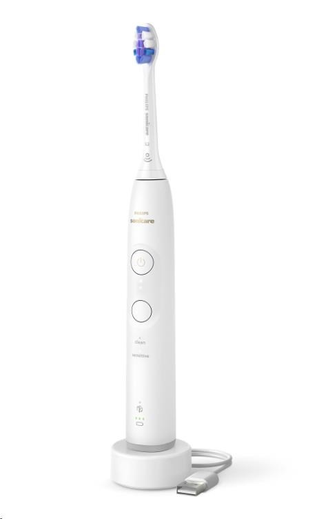Tento elektrický zubná kefka využíva našu technológiu Sonicare novej generácie, ktorá zabezpečuje naše najspoľahlivejšie a najkonzistentnejšie čistenie, aby ste zakaždým dosiahli skvelé výsledky. Motor automaticky upravuje výkon, takže keď sa dostanete na ťažko dostupné miesta, nedôjde k žiadnemu poklesu. Užite si jemné, ale výkonné čistenie zubov a ďasien s 62 000 pohybmi štetín za minútu. Dynamická vlna Sonicare podporuje účinnosť štetín tým, že vháňa tekutinu hlboko do medzizubných priestorov a podél línie ďasien.