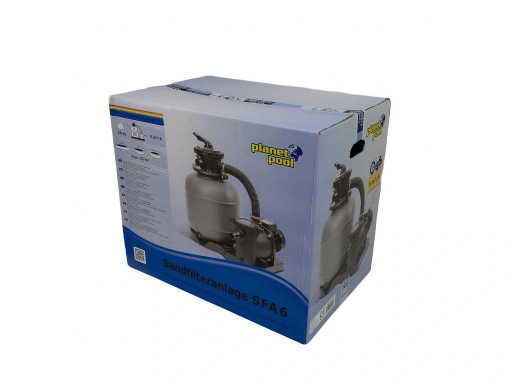 Písková filtrácia je srdcom každého bazénu, ktoré zabezpečuje, aby bola voda v bazéne kvalitná a krásne čistá. Filtrácia SFA 6 je určená pre bazény s objemom do 35 m3. Filtračná nádoba je vyrobená z kvalitného polypropylénu, pojme 20 kg filtračného piesku a odoláva korozii a bežnej bazénovej chemii. Filtrácia má výkonné čerpadlo s výkonom 400 W a je vybavená predfiltrom hrubých nečistôt, kde sa zachytí všetky väčšie nečistoty. Súčasťou filtračnej nádoby je praktický vypúšťací ventil. Hlava filtra je vybavená 6-cestným ventilom, teleso filtra je usadené na stabilnej základni. Vďaka silnému čerpadlu je filtrácia vhodná pre používateľov, ktorí potrebujú do filtračného okruhu pripojiť bazénové príslušenstvo (napr. solárne ohrev, vysávač). Filtrácia je určená na vonkajšie použitie a je odolná proti poveternostným vplyvom.