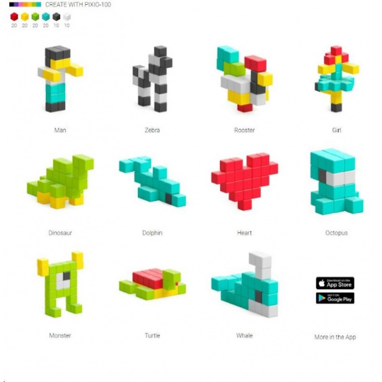 DIZAJNOVÁ SÉRIA PIXIO-100 OBSAHUJE 100 BLOKOV PIXIO V ŠIESTICH DOKONALE ZLADENÝCH FARBÁCH, KTORÉ