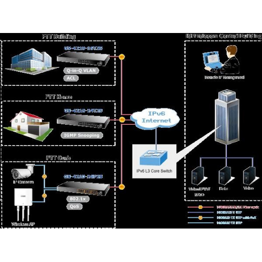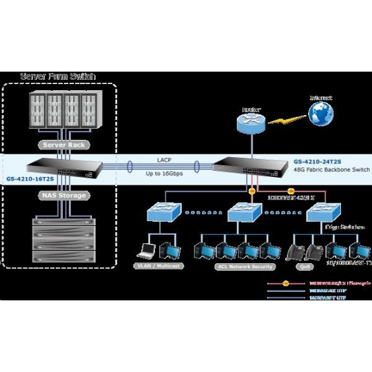 Gigabitový spravovateľný prepínač na inštaláciu v náročnejších lokálnych sieťach má širokú škálu funkcií na zabezpečenie prevádzky bezpečnej siete elimináciou možných útokov na nižších vrstvách modelu OSI a možnej autentifikácie koncových zariadení. Pripojenia koncových používateľov môžu byť zabezpečené pravidlami ACL/MAC alebo možnou autorizáciou na serveri RADIUS/TACACS. Bezpečnú správu zabezpečuje šifrovaná webová správa alebo protokol SNMPv3 prostredníctvom protokolu IPv4 alebo nového protokolu IPv6. náhrada za GSW-2404SF - 24 portov 1000Base-T, prepínanie, plný duplex (1000/2000 Mb/s), automatické vyjednávanie (10/100/1000 Mb/s) - 2x SFP, 100/1000Base-X, na inštaláciu optických modulov mini-GBIC s označením MFB a MGB - Auto-MDI/MDI-X, automatická detekcia priameho kríženého kábla aj pre 10/100 Mb/s - 8k MAC adries, 4,1MB vyrovnávacia pamäť - Priepustnosť: 52Gb/s zbernica, rýchlosť prenosu dát 38,6Mp/s (64B) - podpora prenosu Jumbo rámcov 9KB - Správa: WEB / SNMPv3 / telnet / konzola(COM port); plná podpora protokolov IPv4/IPv6 - VLAN IEEE 802.1Q, až 256 skupín, až 4094 VLAN ID, protokolové VLAN, VoIP-VLAN - LACP agregácia portov podľa IEEE 802.3ad, až 8 skupín po 8 portoch - QoS 8 úrovní pre 8 frontov; klasifikácia podľa prevádzky, váženého priemeru alebo IEEE 802.1p a DSCP - Port shaper: obmedzenie rýchlosti prenosu dát - Spanning tree protokol IEEE 802.1D: STP / RSTP / MSTP - IGMPv3 Snooping, Querier, až 256 multicast skupin - podpora LLDP protokolu - zrcadlení portů-port mirroring: TX / RX / TX+RX - zabezpečení klientů: ACL (access control list), MAC statická tabulka pro autentizovaná zařízení, podpora ověření vůči serverům RADIUS/TACACS+, DHCP snooping - ochrana DoS proti útokům v síti, StormControl proti eliminaci chybných provozů - pole LED indikátorů pro diagnostiku provozu - ESD ochrany proti statické elektřině - rozměry: (445 x 207 x 45)mm, hmotnost 2,1kg - provedení rackmount 19"/1U - provozní teplota: 0-50°C - interní napájecí zdroj AC 110-240V/50-60Hz, vlastní příkon do 14W - fanless: žádný ventilátor..