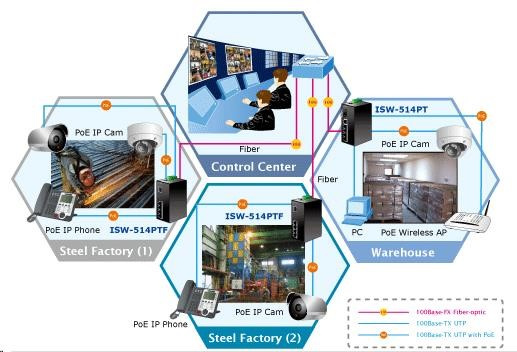 Prepínač planét ISW-514PTF, priemysel.verzia 4x10/100+1x100BaseFX (SFP), DIN, IP30, -40 až 70°C, 12-48V Priemyselné ethernetové prepínače sú určené do náročných prevádzkových podmienok so širokým rozsahom prevádzkových teplôt, neistým napájaním a častými otrasmi. Prepínače radu ISW sa ľahko inštalujú na štandardnú lištu DIN alebo priamo na stenu a umožňujú nasadenie známej technológie Ethernet aj v priemyselnom prostredí. Sú vhodné aj na inštaláciu vo vonkajších krytoch s veľkými výkyvmi prevádzkových teplôt (typicky bezdrôtové aplikácie a aplikácie MAN ISP alebo kamerové systémy). Verzia s POE IEEE 802.3af umožňuje priamo napájať až 4 koncové zariadenia, takže je ideálny pre aplikácie so zníženým výkonom koncových zariadení! Vlastnosti: 4 porty 10/100 Base-TX, prepínanie, plný duplex (100/200 Mb/s), automatické vyjednávanie (10/100 Mb/s) na všetkých PoE IEEE 802.3af injektory se zatížitelností 15,4W/port, celkově až 60W 1x 100FX, SFP slot pro instalaci modulů MFB-TFX nebo MFB-TF20 2k MAC adres automatická detekce přímý/křížený kabel na každém portu pole LED indikátorů pro diagnostiku provozu instalace na DIN lištu, montážní díl součástí instalace na zeď, montážní díl součástí krytí IP30, skříň celohliníková napájení: 24/48V DC redundantní, připojení možné ze dvou různých zdrojů (nejsou součástí balení) ochrana proti přepólování, připojení napájení na svorkovnici, umístění na spodním panelu (nepřekáží při montáži na zeď) alarmový výstup aktivovaný při výpadku napájení zařízení je odolné proti pádu (IEC-60068-2-32) z výšky 75cm na všechny dopadové části zařízení je odolné proti vibracím (IEC-60068-2-6) 10-500-10Hz, 4x g, 0,5oct/min zařízení je odolné proti přetížení krátkodobému zrychlení 50x g, dlouhodobému 4x g (IEC-60068-2-27) EMI/EMS, elektromagnetická komp C, vlhkosť do 90 % hmotnosť: 842 g rozmery: 135 x 87.8 x 56 mm..