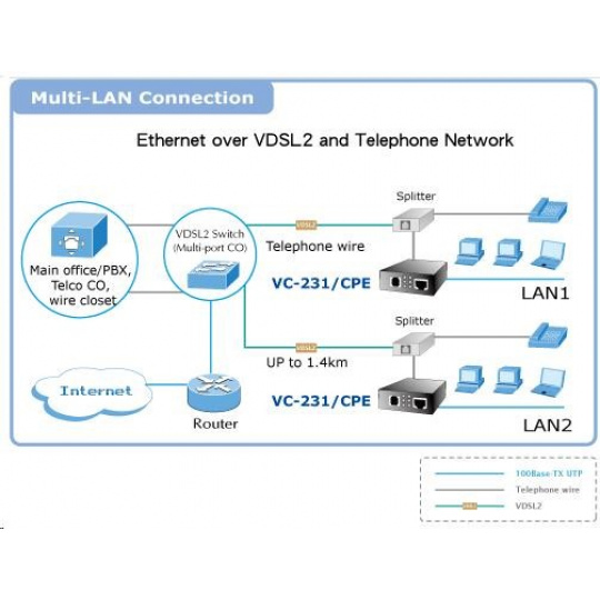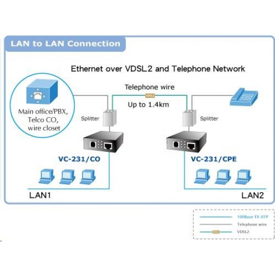 Planet VC-231, Eth. VDSL2 konvertor, 100Mbit, master/slave, RJ-11