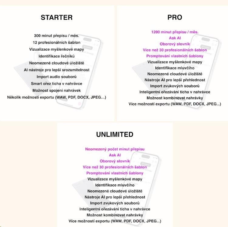 - Váš 3 v 1 asistent: Záznam, přepis, souhrn. 300 minut měsíčně zdarma