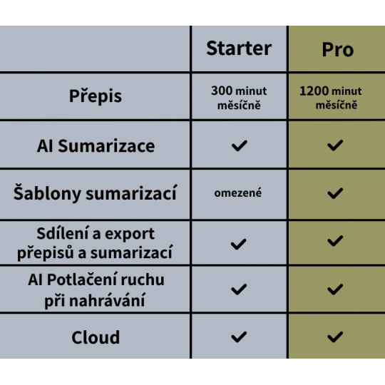 Pre prepis, sumarizáciu a ďalšie funkcie záznamníka Plaud je k dispozícii služba Plaud AI membership. Ak vám stačí 300 a menej minút, môžete pokračovať s plánom Starter, ktorý je zadarmo a ponúka takmer všetky funkcie. Ak potrebujete viac, je pre vás plán Pro s 1200 minútami prepisu a prístupom k experimentálnym funkciám ako je identifikácia hovoriaceho alebo prekladač, ktoré sa budú priebežne objavovať v aplikácii. Oba plány ponúknu 10 000 minút cloudového úložiska a AI potlačením šumu.