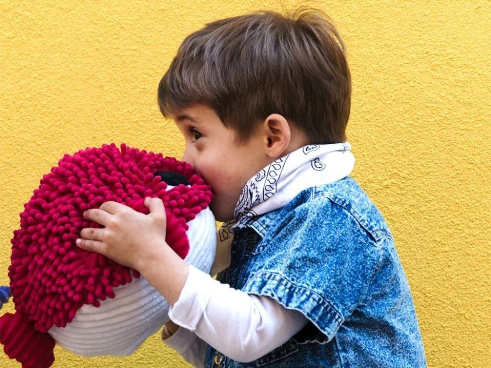 Plyšová ryba Blowfish - máma s miminkem, červená