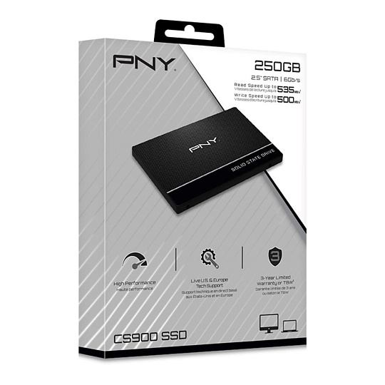 PNY CS900 je ideálním řešením pro upgrade z pevného disku (HDD) na běžný SSD disk. CS900 nabízí všechny nejvyhledávanější funkce za vynikající cenu a je navržen pro snadnou a cenově dostupnou výměnu pevného disku v počítačovém systému, což pomáhá dosáhnout rychlejšího spouštění systému, rychlejšího spouštění aplikací a lepšího celkového výkonu systému. Díky absenci pohyblivých částí je PNY CS900 vysoce odolný, méně náchylný k selhání.