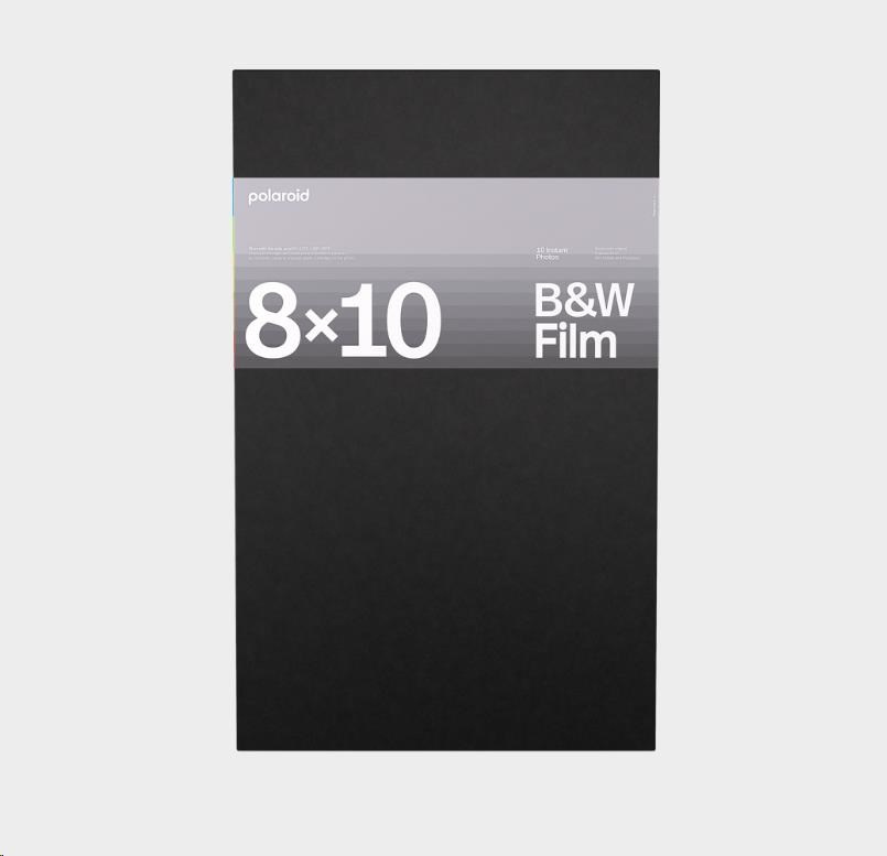 A pack to make 10 large format B&W photos. For use with an 8x10 camera, Polaroid film holder and processor.