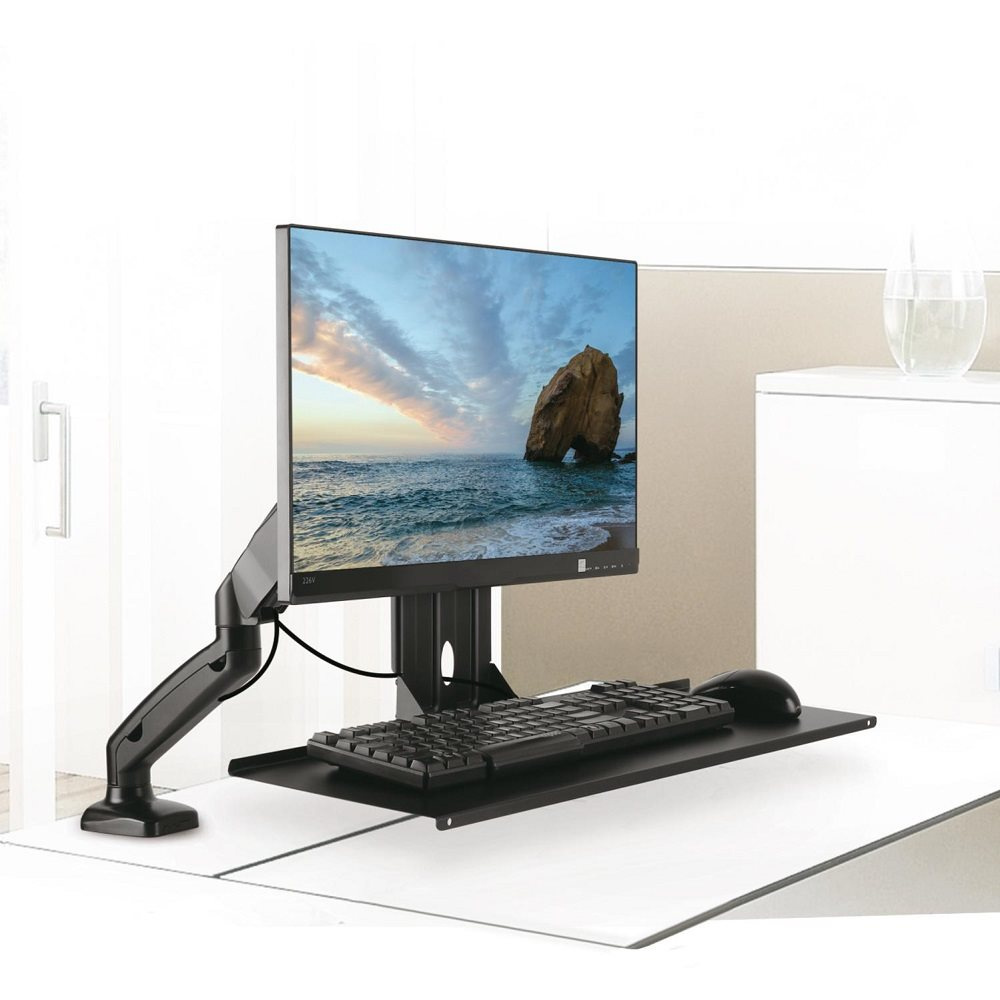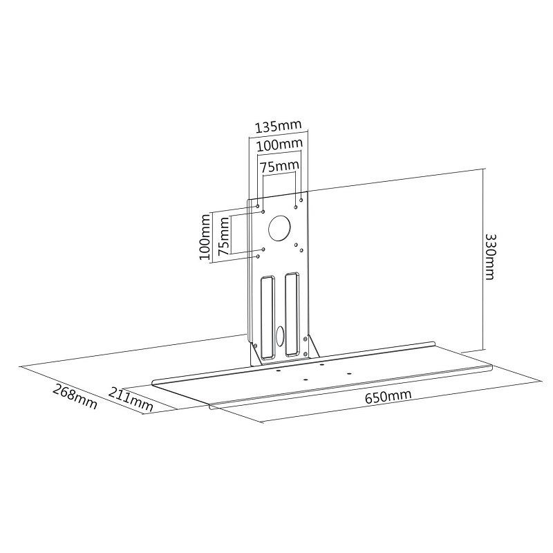 Polica na klávesnicu a myš Fiber Mounts M7C56 Prídavná polica na klávesnicu a myš na držiaky monitorov, upevnenie na VESA 75x75 alebo 100x100 medzi monitor a držiak, kovová, výborná kvalita Potrebujete na držiak pod monitor umiestniť klávesnicu a myš, aby ste ich nemali na stole? Riešenie je jednoduché, elegantné a cenovo dostupné. Ponúkame prídavnú polici na klávesnicu a myš, ktorú ľahko uchytíte na VESA adaptér u stolových držiakov, ale aj nástenných, prípadne stropných. Klávesnicu a myš budete mať vždy priamo pod monitorom. Klávesnicu je možné upevniť na všetky držiaky, ktoré podporujú VESA štandard 75x75 alebo 100x100. Prídavná polica na klávesnicu a myš, ideálna na použitie na stolové držiaky monitorov alebo nástenné držiaky na TV s uhlopriečkou do 27 palcov, upevnenie na VESA štandard 75x75 a 100x100, nosnosť 2kg, rozmery 650x211mm - Fiber Mounts M7C56 Technické údaje: nosnosť 2kg dĺžka poličky 650mm šírka poličky 211mm upevnenie na VESA štandard 75x75 alebo 100x100 polica je vhodná pod monitory a televízory s uhlopriečkou 13" až 27" jednoduchá inštalácia materiál kov farba čierna záruka 5 rokov Prídavná polica M7C56 je vhodná na všetky stolové, nástenné aj stropné držiaky na monitory, ktoré majú VESA 75x75 alebo 100x100 a monitor, ktorý bude na držiaku visieť, bude mať uhlopriečku 27" alebo menej.