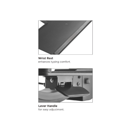 Polička na klávesnicu Fiber Mounts M7C95 Plne nastaviteľná doplnková polička na klávesnicu, rozmery 670x255mm Profesionálna plne nastaviteľná stolová doplnková polička na klávesnicu a myš, ktorá poskytuje skutočné ergonomické riešenie pre Vašu najpohodlnejšiu prácu. Nastavenie vo všetkých polohách s aretáciou. Ak požadujete to najlepšie a záleží Vám na zdravom pracovnom štýle, túto poličku si zamilujete. Profesionálna stolová polička na klávesnicu, plne nastaviteľná: vysúvacia, otočná, sklopná, výškové nastavenie 34cm, aretácia polohy - Fiber Mounts M7C95 Technické údaje: nosnosť 2kg výsuvná 470mm výškové polohovanie 340mm otáčanie +/- 180° rozsah naklápania +15 / -13° rozmery police 670 x 255 snadné schovanie poličky s klávesnicou pod stolovou doskou aretácia polohy najvyššia kvalita snadná inštalácia a ovládanie zvýšenie komfortu a pracovného výkonu farebné prevedenie čierne záruka 3 roky Precízne veľmi jednoduché nastavovanie poličky na klávesnicu Fiber Mounts M7C95 Ušetrite na svojom stole veľa miesta - dajte klávesnicu a myš na túto výsuvnú poličku a kedykoľvek ju môžete uschovať pod stolovou doskou. Polička je plne nastaviteľná a pri práci poskytuje vysoký komfort.