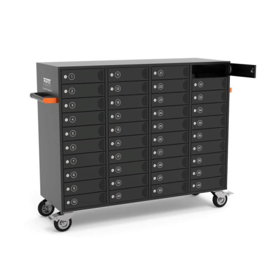 Táto skrinka dokáže nabíjať, bezpečne ukladať a spravovať až 40 tabletov, notebookov, mobilných telefónov a ďalších elektronických zariadení.