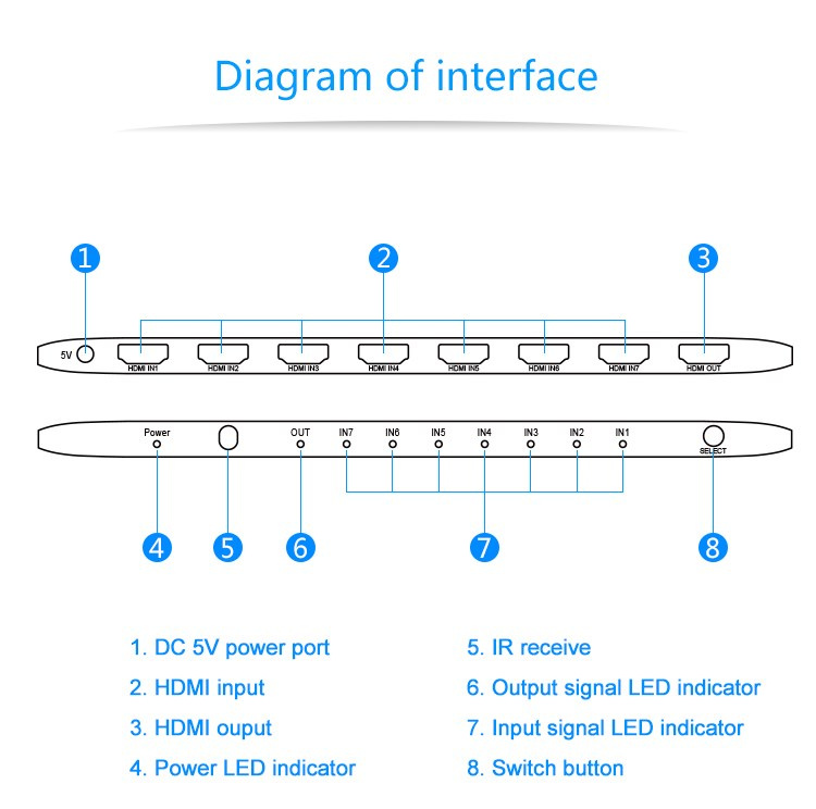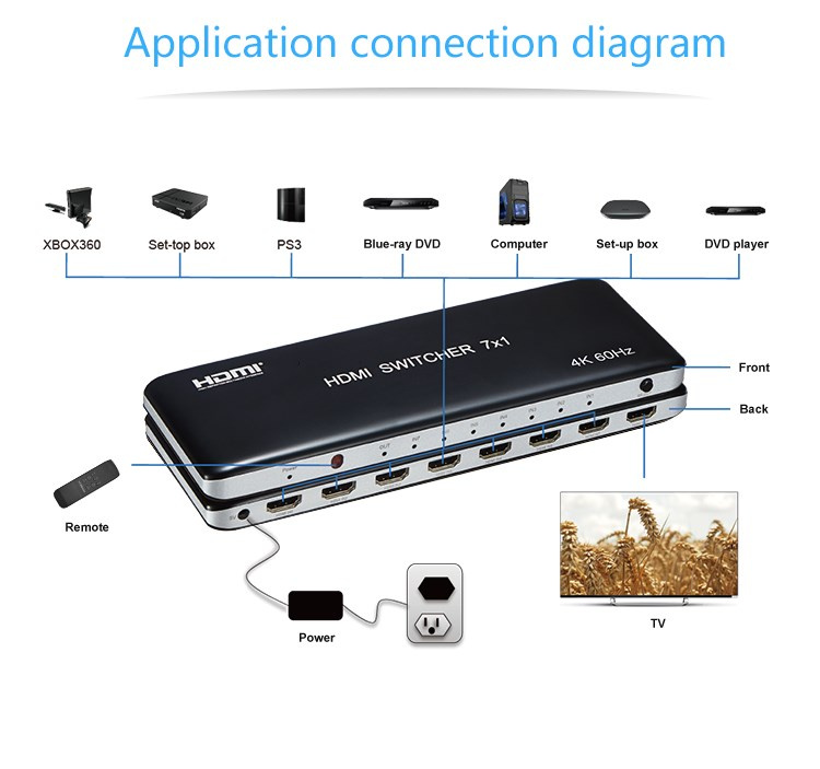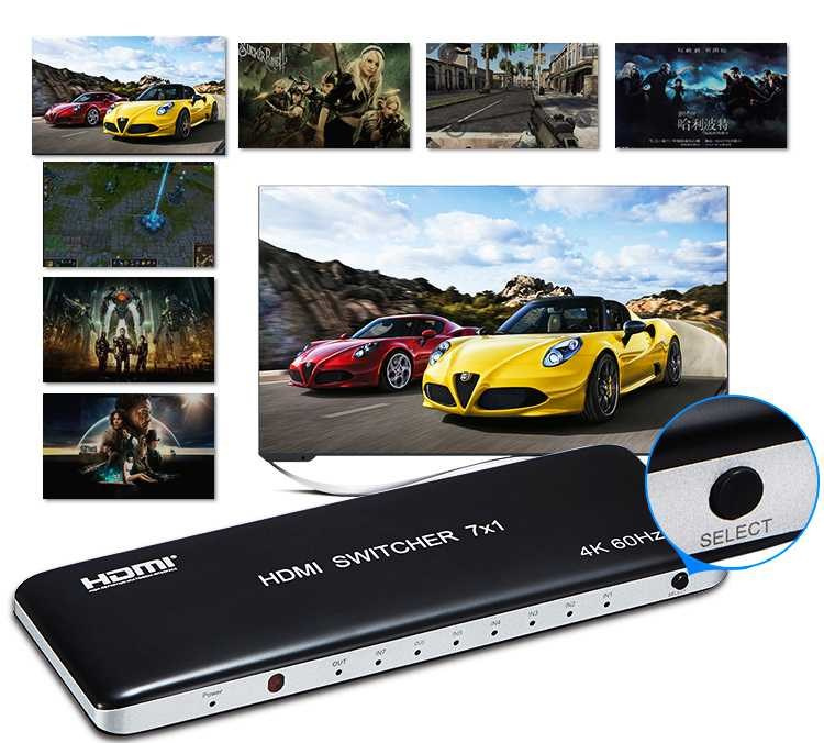 PremiumCord 4K@60hz HDMI switch 7:1 plastový s dálkovým ovladačem