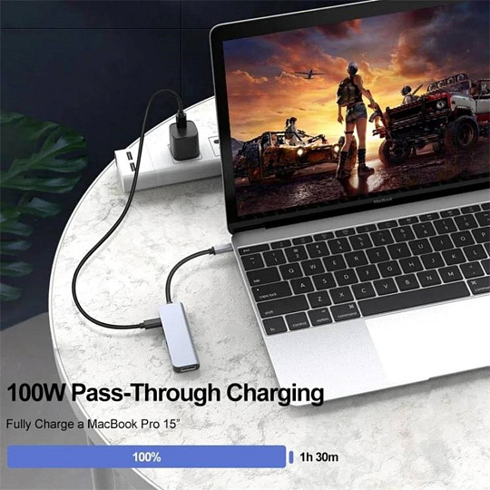 Umožní přidat další monitor a USB periferii s vysokou rychlostí 10G nebo paměť a současně napájet přes konektor PD (power delivery). Umožňuje také pracovat na více obrazovkách současně. Udělejte si svůj pracovní den více zábavný a pohodlnější, pracujte na dvou obrazovkách současně.