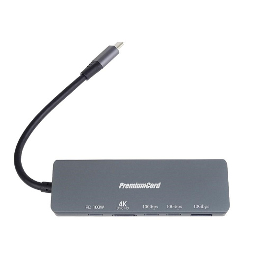 PremiumCord Adaptér USB-C na 4K@60Hz HDMI + 10G USB3.2 A + 10G 2x USB-C + PD
