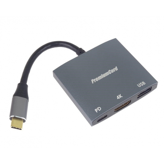 PremiumCord adaptér USB-C na HDMI, USB3.0, PD, 4K a FULL HD 1080p rozlíšenie