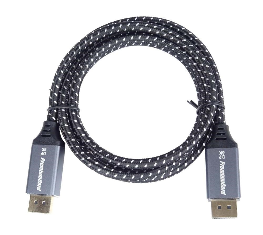 PremiumCord DisplayPort 1.4 přípojný kabel pro rozlišení 8K, kovové a zlacené konektory, 5m