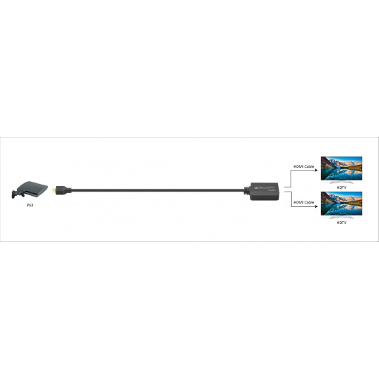 | pokyny na zapojenie: | 1) Pripojte vstup HDMI rozdeľovača HDMI pomocou kábla HDMI k zdroju signálu a výstup pripojte k zobrazovacej jednotke alebo monitoru. Ak sa obraz nezobrazí ihneď po zapojení rozbočovača, počkajte približne 30 s, kým sa rozpozná signál HDMI. |