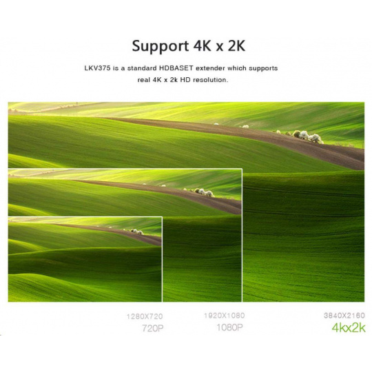 - Umožňuje rozlíšenie až 4Kx2K@30Hz cez Cat5e/Cat6