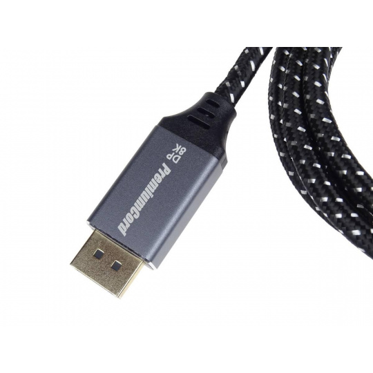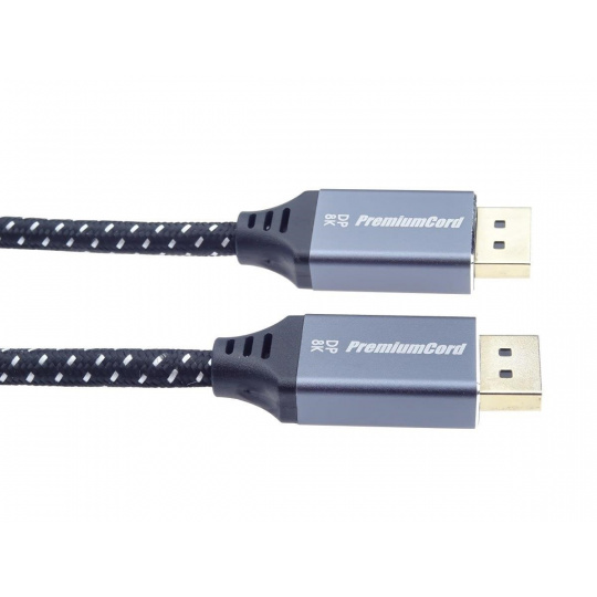 PremiumCord DisplayPort 1.4 pripojovacie káble M/M pre rozlíšenie 8K, kovové krytky a pozlátené konektory, 1 m