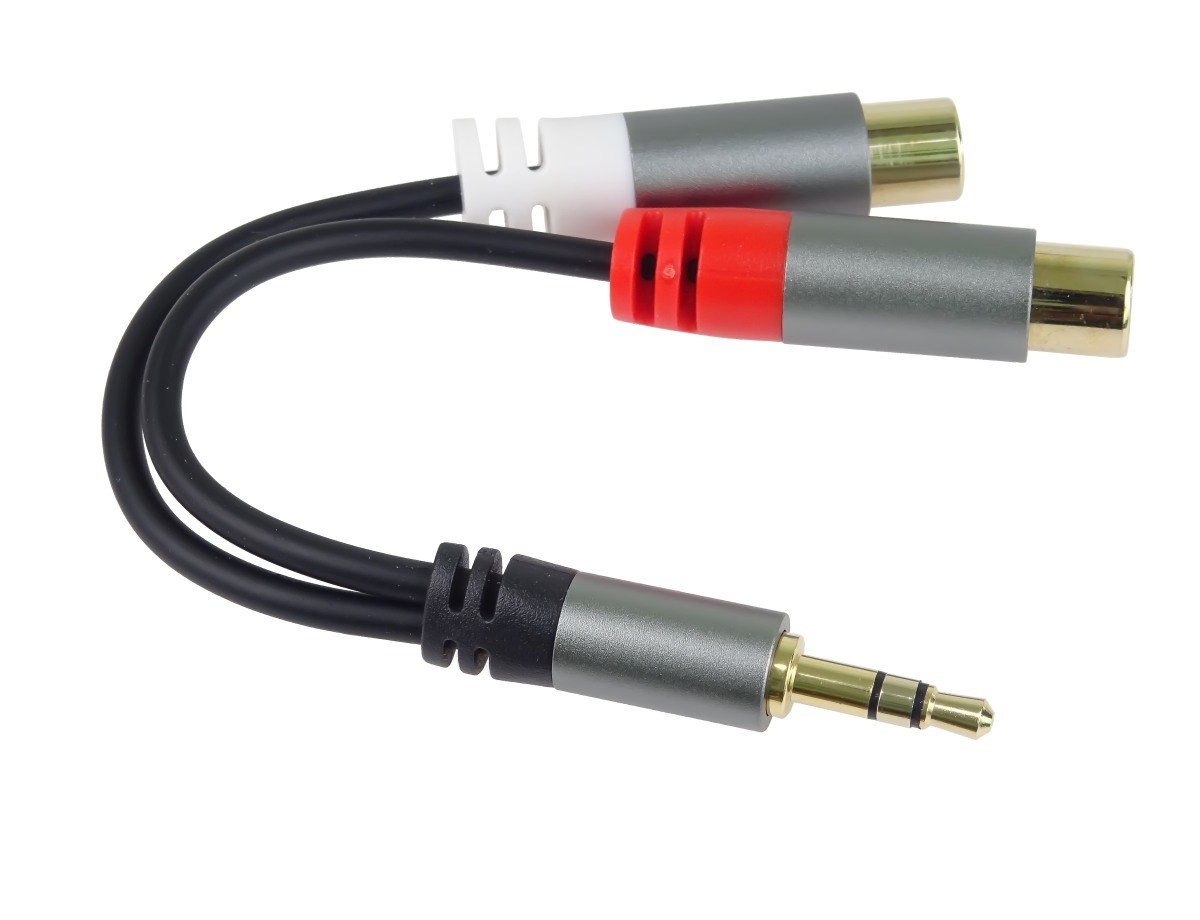 - konektory 3,5" stereo jack samec - 2x cinch samice