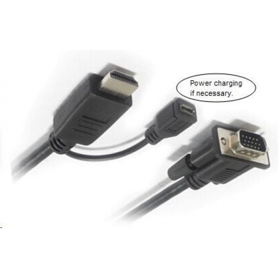 Káblový prevodník HDMI na VGA s napájacím konektorom micro USB - čierny - Adaptér je určený pre počítače alebo notebooky s výstupom HDMI na prevod obrazu na analógový VGA. - Vstup: konektor HDMI - samec (kompatibilný s HDMI 1.4 a DVI 1.0 ) - Výstup: konektor VGA DB15 - samica (kompatibilný so špecifikáciou VESA VSIS v1r2) - Konvertor umožňuje pripojiť zariadenie s výstupným signálom HDMI k zobrazovaciemu zariadeniu alebo televízoru, monitoru s konektorom VGA - Podporuje: HDCP1.0/1.1/1.2; HDMI1.1/1.2/1.3; - Technológia Plug and Play; - Podporuje rozlíšenie: 480i/576i / 480p / 576p / 720p/1080i / 1080p / 60Hz; Výstup VGA: 480i/576i / 480p / 576p / 720p/1080i / 1080p / 60Hz - Podporuje FULL HD 1080P (1920*1080P@60Hz) - Maximálne rozlíšenie 1920*1200@60Hz. - Nízka spotreba energie: 130 mA. - Napájanie pomocou HDMI (5 V). - Ak napájanie z portu HDMI nestačí, v prípade potreby použite napájanie adaptéra pomocou kábla USB s konektorom micro USB, ktorý sa zasunie do konektora micro USB tohto prevodníka (napr.ku2m05f) Ďalšou možnosťou dodatočného napájania je použitie napájacieho adaptéra 230V - 5V/1A s konektorom micro USB - dĺžka 2 m - farba: čierna..