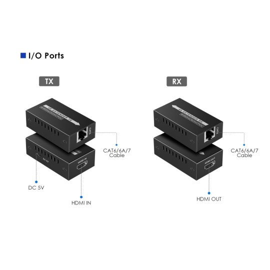 Zariadenie umožňuje po jednom kvalitnom sieťovom kábli preniesť špičkový obraz vo vysokom rozlíšení 4K@60Hz alebo FULL HD 1080p signál až na 60m.