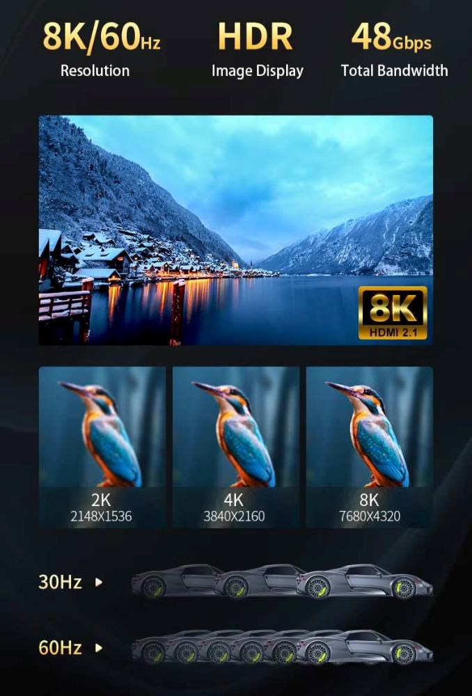 - Podporuje Ultra High Definition rozlišení 8K@60Hz, 4K@120Hz, YUV 4:4:4