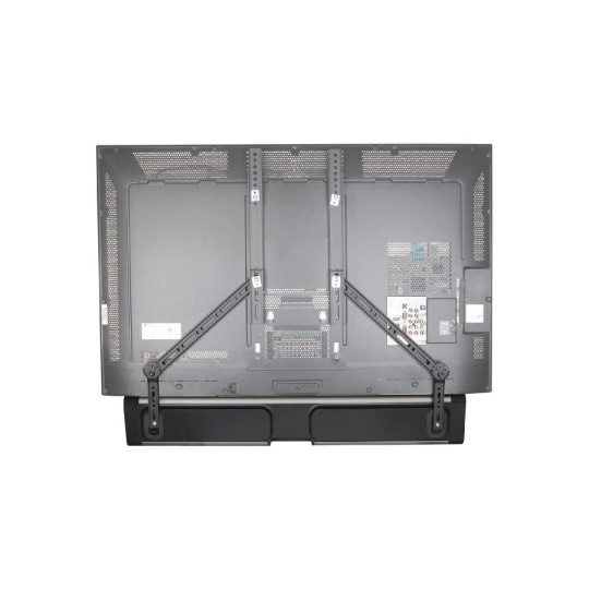 Univerzálny prídavný držiak na upevnenie soundbaru alebo reproduktora pod alebo nad televíziu zavešenou na držiaku TV. Vhodné pre všetky typy televíznych držiakov. Nastaviteľná dĺžka ramien 78-480mm, pevná konštrukcia, nosnosť 15kg.