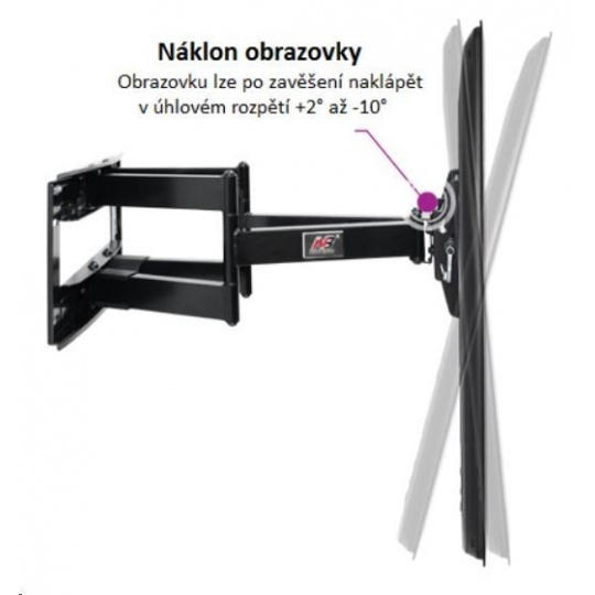 Otočný a sklopný držiak na LCD, LED a plazmové TV najväčších rozmerov 50" až 90" Cenová bomba medzi držiakmi na veľké televízie - špičkový držiak s unikátnymi vlastnosťami za špičkovú cenu. Držiak unesie aj tie najväčšie televízie a pritom si zachováva výbornú nastaviteľnosť - otáčanie, sklopenie, zmena vzdialenosti. Súčasťou je aj systém vedenia káblov. Držiak na najväčšie televízory 50 až 90 palcov - nosnosť 90,7kg, otáčateľný do strán, sklopný, delkovo nastaviteľný NB SP5 / drzakyastolky.cz Technické údaje: • nosnosť 90,7kg • VESA štandard 200x200 až 800x500 • odporúčame na televízie s uhlopriečkami 50" až 90" • náklon TV +5° až -15° • natočenie do strán +75° až -75° • vzdialenosť od steny 116mm až 708mm • systém vedenia káblov • korekcia roviny TV • vynikajúca konštrukcia • bezkonkurenčná bezpečnosť • jednoduché polohovanie obrazovky • záruka 5 rokov Držiak je dodávaný vrátane hmoždiniek a vrutov na montáž držiaku na stenu a univerzálnej sady skrutiek pre zaveste televízor na držiak. Držiak podporuje VESA štandardy: • VESA 200x200 • VESA 300x300 • VESA 400x200 • VESA 400x300 • VESA 400x400 • VESA 600x400 • VESA 800x400 • VESA 800x500 • všetky ostatné VESA štandardy s hodnotou 400-800 x 200-500 Držiak NB SP5 je vhodný na zavešenie všetkých televízorov a monitorov, ktoré majú hmotnosť do 90,7kg a podporujú VESA štandard podľa tabuľky vyššie. Uvádzaná doporučená uhlopriečka nie je podstatná, iba informatívna, aké veľké obrazovky by mali hmotnosť aj VESA štandard spĺňať. Držiak preto môže byť vhodný aj pre ešte väčšie uhlopriečky ako 90 palcov.