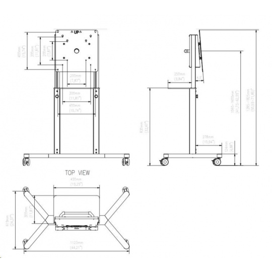 Podporované VESA štandardy: • VESA 200x200 • VESA 300x300 • VESA 400x400 • Mobilný vozík s otáčavou hlavou - pivot • Ideálny pre kancelárie alebo vzdelávacie priestory • Podporuje funkcie a vlastnosti 55-palcového displeja Samsung Flip • Maximálna nosnosť 70 kg • Atraktívny vzhľad a nastavenie výšky displeja • Konštrukcia vozíka umožňuje vedenie káblov cez hlavu, čo činí vedenie bezpečným a odolným voči opotrebeniu pri otáčaní displeja. • Bezpečné a odolné