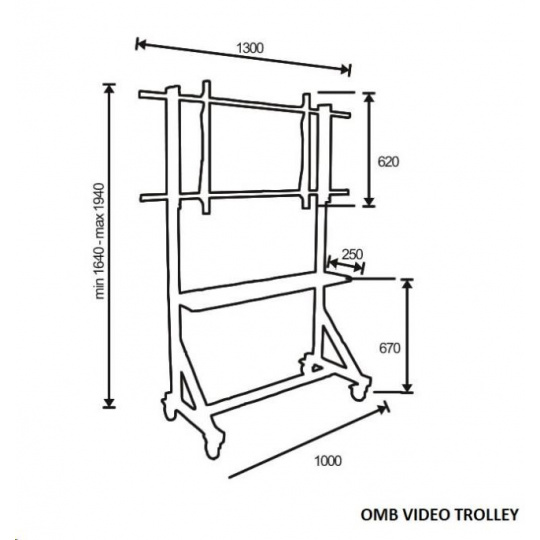 Profesionální vozík/stojan držák na televizory 55-100", pojezdová kolečka s brzdou, OMB VIDEO TROLLEY