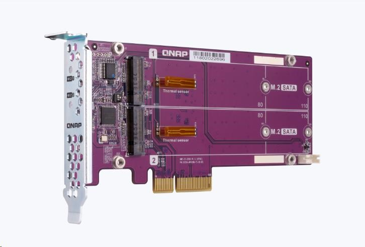 Karty PCIe QM2 pridávajú zariadeniam QNAP NAS podporu pre M.2 SATA SSD, takže používatelia môžu konfigurovať SSD cache, caching pool alebo svazok s automatickým stupňovaním pre zlepšenie celkového výkonu NAS. QM2 posilňuje výkon pridaním M.2 SSD. Nezaberá 3,5" pozíciu pre disky, čo umožňuje maximalizovať úložnú kapacitu aj výkon.